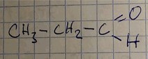 Молекула содержит этильный радикал (CH₃-CH₂-), связанный с альдегидной группой.