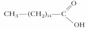 5. Пальмитиновая кислота (гексадекановая кислота) — C₁₅H₃₁COOH.