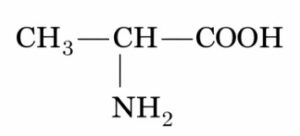 В этой аминокислоте, помимо аминогруппы и карбоксильной группы, присутствует метильная группа CH₃, которая влияет на её свойства и делает молекулу более сложной по строению.