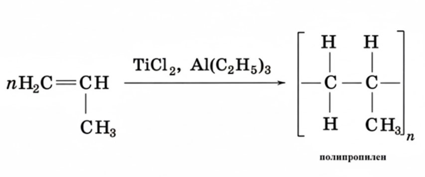 Синтез полипропилена происходит через полимеризацию пропилена: